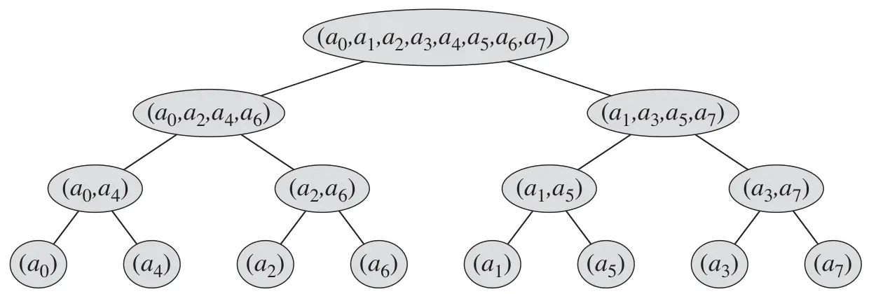 从递归到迭代我们来看一下 FFT 递归的全过程: