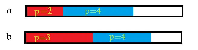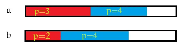 我们可以将 a 中p=2的每块瓷砖都找到 b 中一个恰好比它小的瓷砖进行匹配。